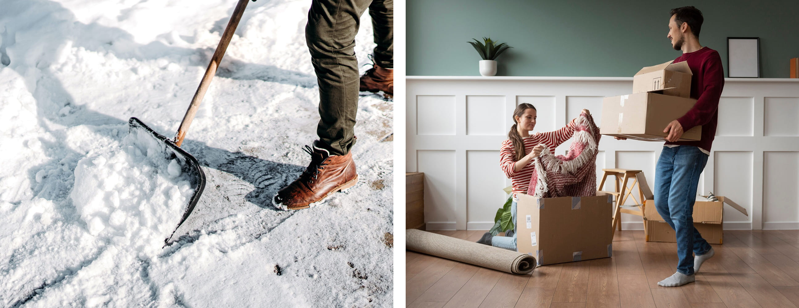 First of all, safety! On moving day, make sure all walkways, driveways and sidewalks at both your old and new homes are shoveled and salted. For you, your movers and anyone else lending a hand, it will help in preventing slips and falls. Furthermore, it provides protection against potential damage to your belongings due to accidents.